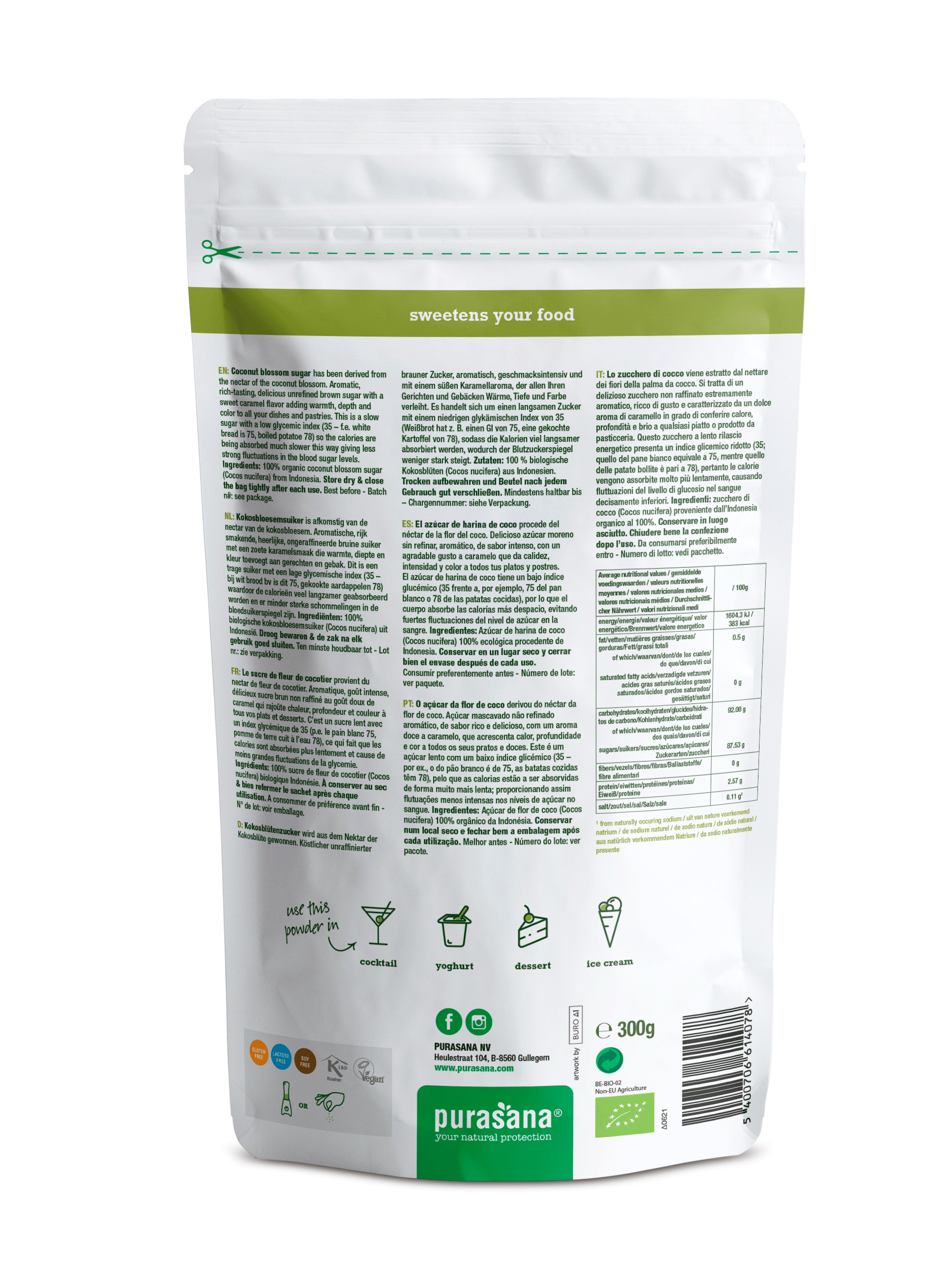 100% organic coconut blossom sugar (Cocos nucifera) from Indonesia.