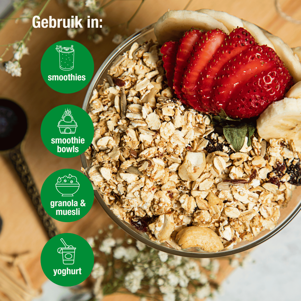 Use in muesli granola, smoothie bowl, smoothie and yogurt