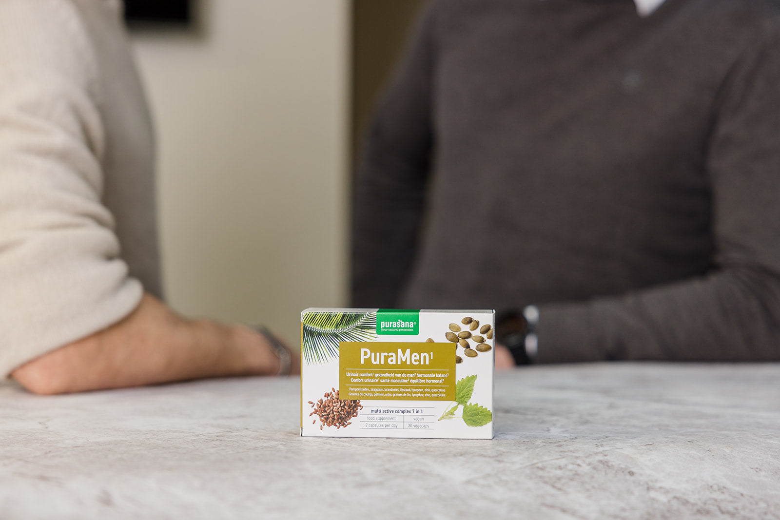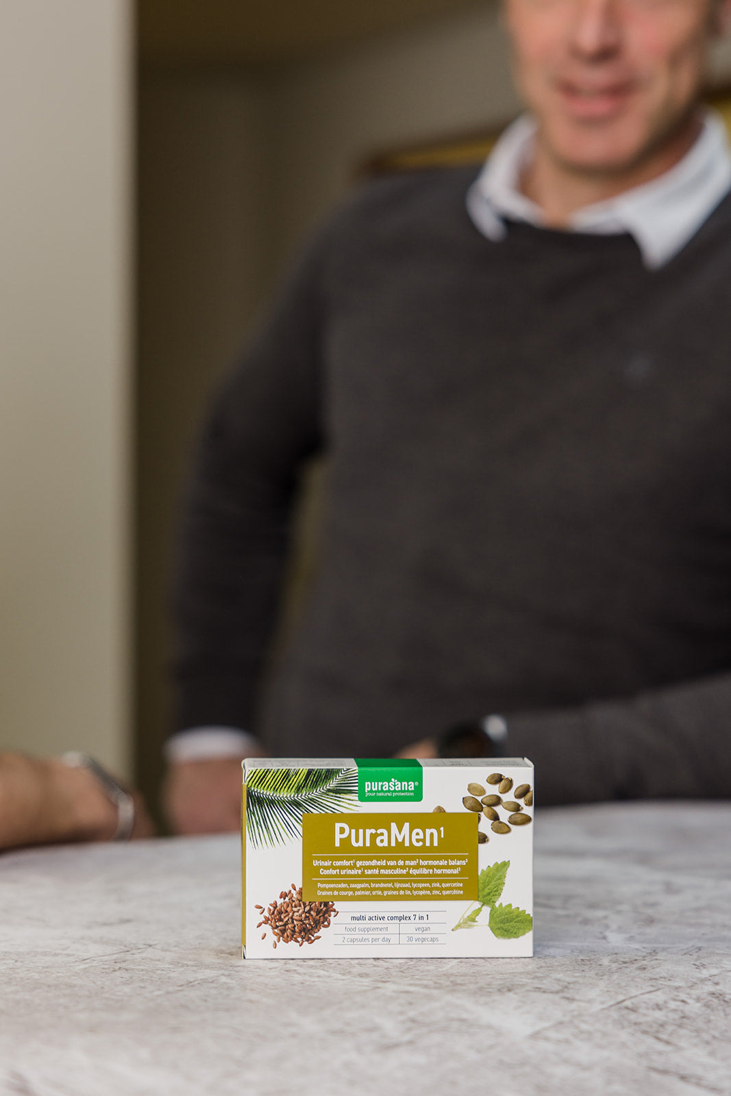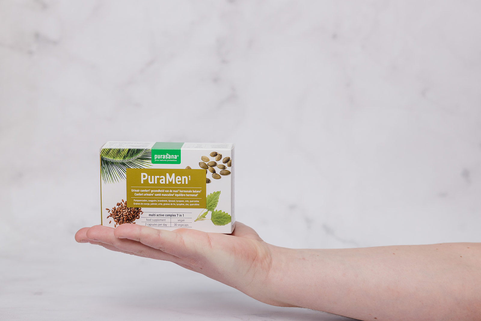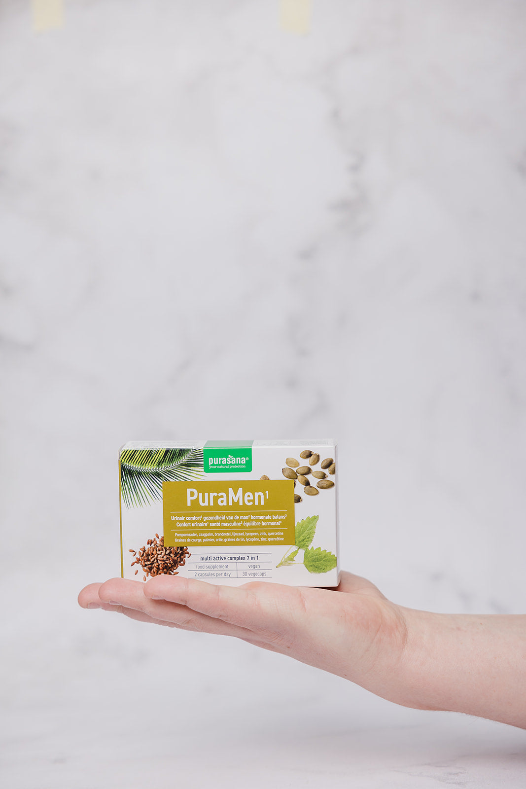 PuraMen is a nutraceutical dietary supplement that helps support men's health. In this way, pumpkin seeds contribute to good bladder function and urinary comfort. Saw palmetto, in turn, has a beneficial effect on male health. Vitamin B6 contributes to regulating hormonal activity. Finally, zinc contributes to normal fertility and reproduction and to the maintenance of normal testosterone levels in the blood.